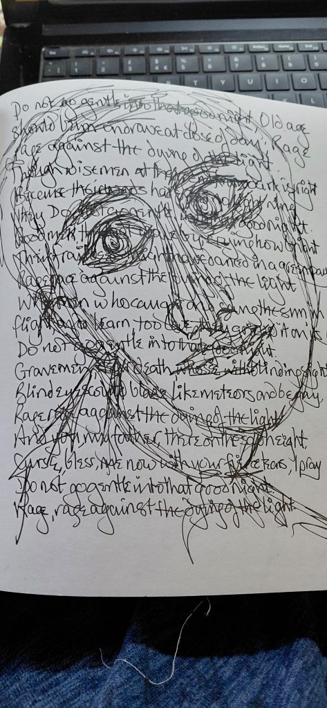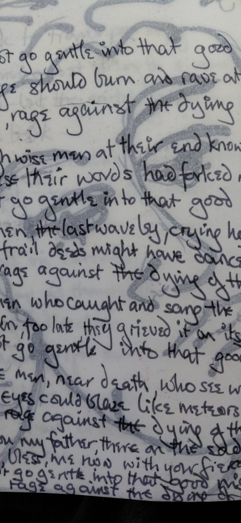 ‘ Do not go gentle into that good night, old age should burn and rave at close of day, rage, rage against the dying of the light ……’