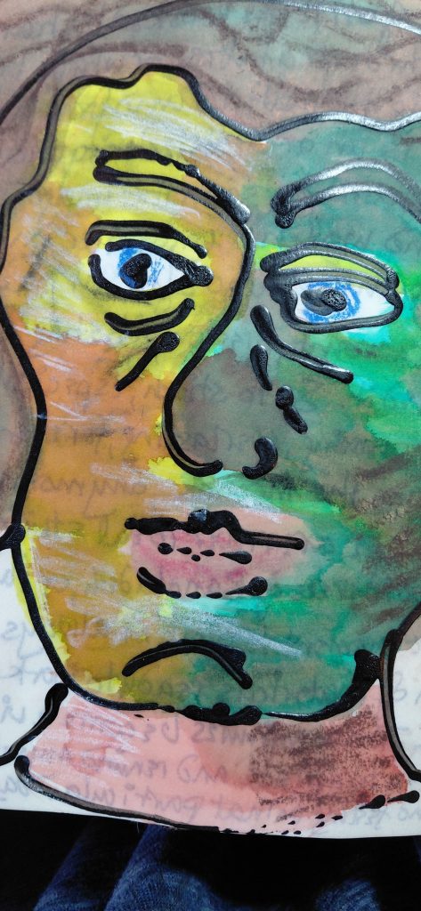 Old family photos haunt me, I have no idea who they are, other than they are my family, my ancestors. These lost faces feed my practice, I create stories as I work with their photos, making a connection to those who have gone before me. My art is deeply personal, these photos are my only link to my family, and I find drawing painting and stitching, mainly large scale pieces, brings me a sense of my place in the world, even if it is mainly brought from my imagination